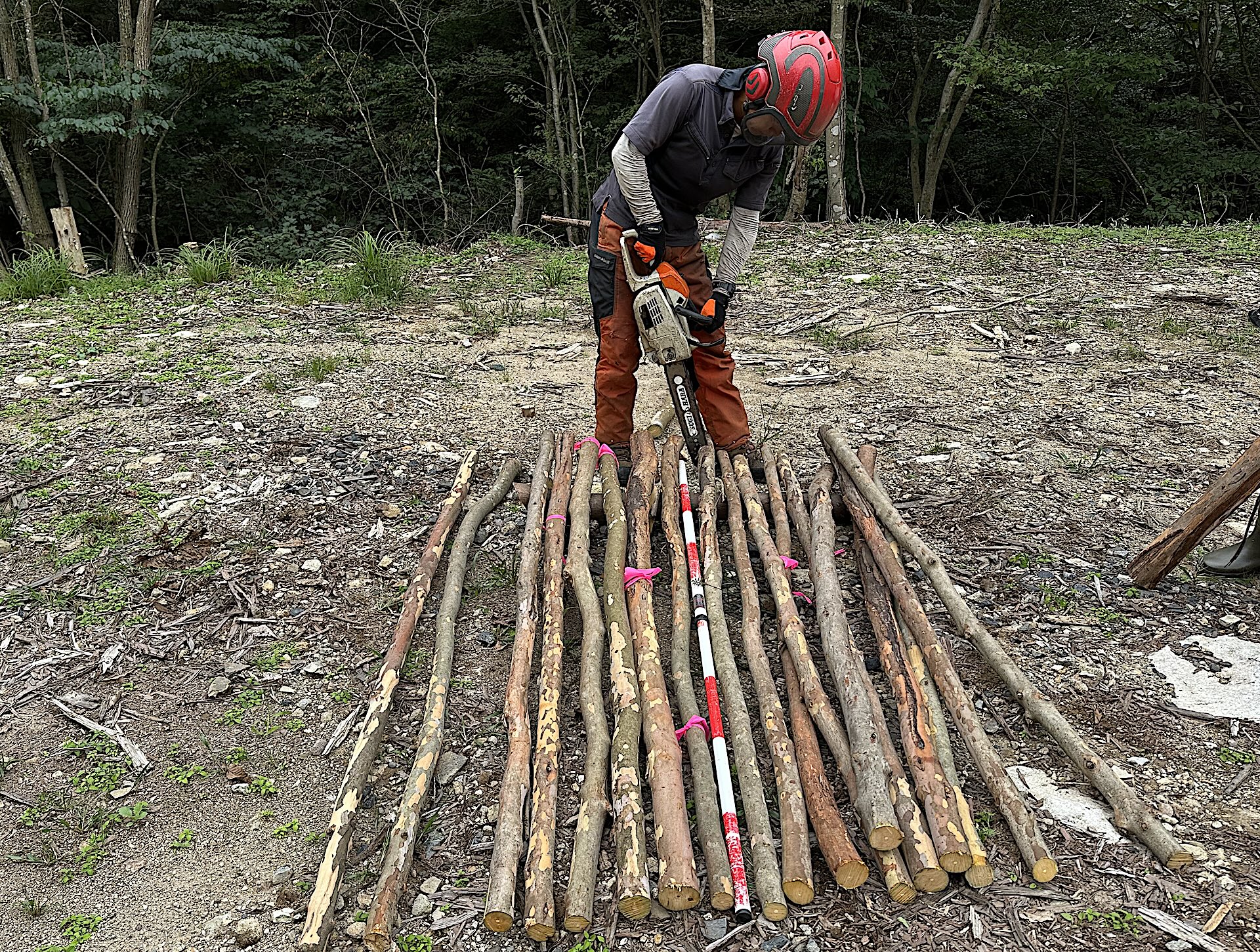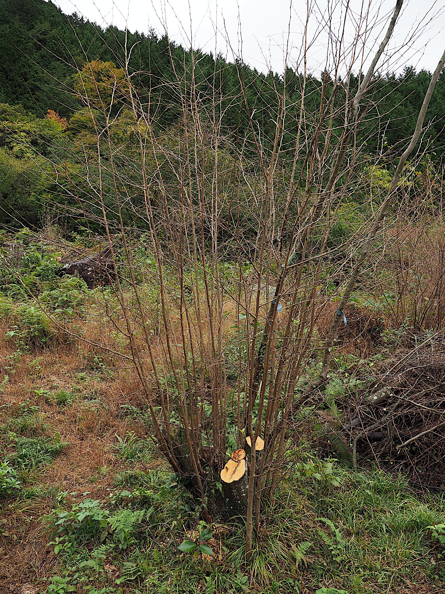 そして11月のエゴノキプロジェクト当日に備え、新しいエリアを皆伐しました。この作業はNPO法人杣の杜学舎が請け負っています。ちなみに杣の杜学舎は森林文化アカデミー1期生が立ち上げた団体で、現代表の藤吉智志さんはプロジェクトのメンバーでもあります。