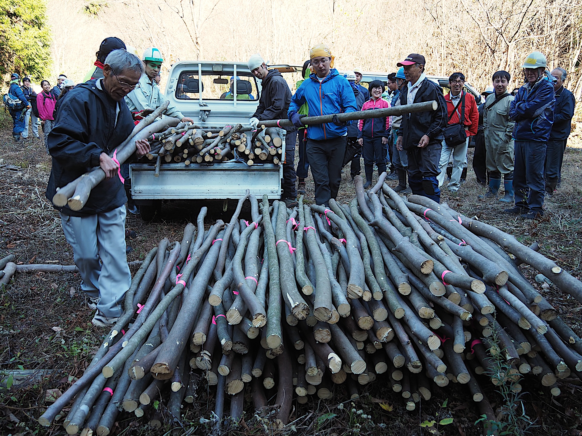 一方、新田の森でエゴノキが育つまでの間、他で材料も確保しなければなりません。報道などを見て県内の方が100本単位で伐って提供してくださる事例もあります。エゴノキがまとまって生えている新しい情報があれば、実行委員会が確認に伺います。wagasa@egonoki-project.com までご連絡ください。